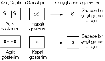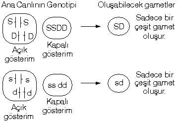 | Gamet çeşidi = 2n = Heterozigot kromozom çifti |