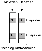 - Heterozigot : Bir karakteri kontrol eden iki alel gen birbirinden farklı ise buna heterozigot denir. Ss, Dd, XY gibi.