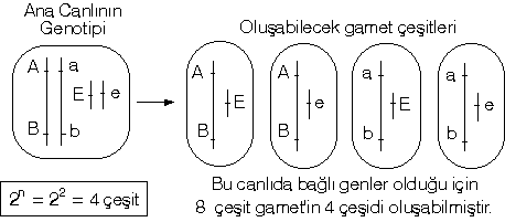 Bağlı genlerin bulunduğu durumlarda, bazı gametler ya oluşmaz, ya da diğerlerinden daha az oranda oluşur. Bunlar krosing-over sonucunda oluşan gametlerdir.